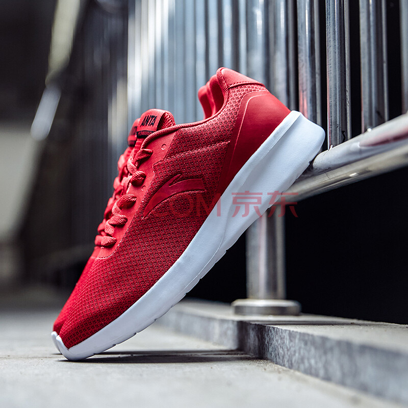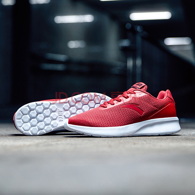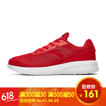 安踏(ANTA)91815525 新品简约轻质跑鞋 柔软缓震运动鞋 大红/黑/安踏白 9.5(男43)