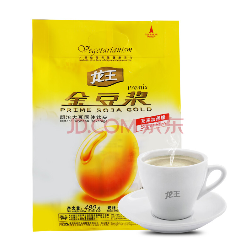 龙王 金豆浆 纯大豆豆浆粉 豆粉 无添加蔗糖营养早餐 480克(30g*16小条)