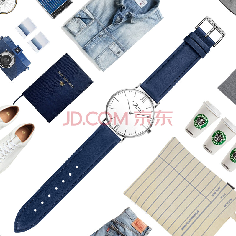 唯路时(JONAS&VERUS)JV男士手表超薄简约钟表深海蓝学生时尚男石英表