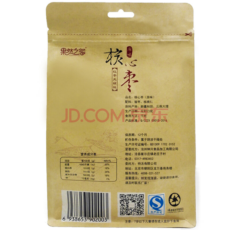 果然之家 核心枣 红枣夹核桃仁 零食特产 新疆大枣包核桃夹心枣240g