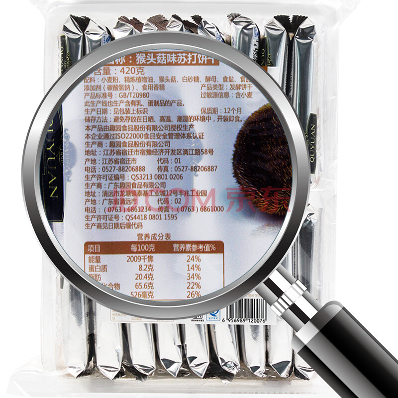 趣园 猴头菇苏打饼干 梳打饼早餐饼代餐食品糕点心礼袋装420g