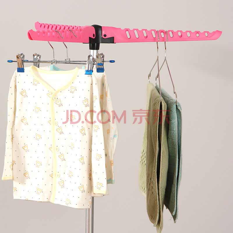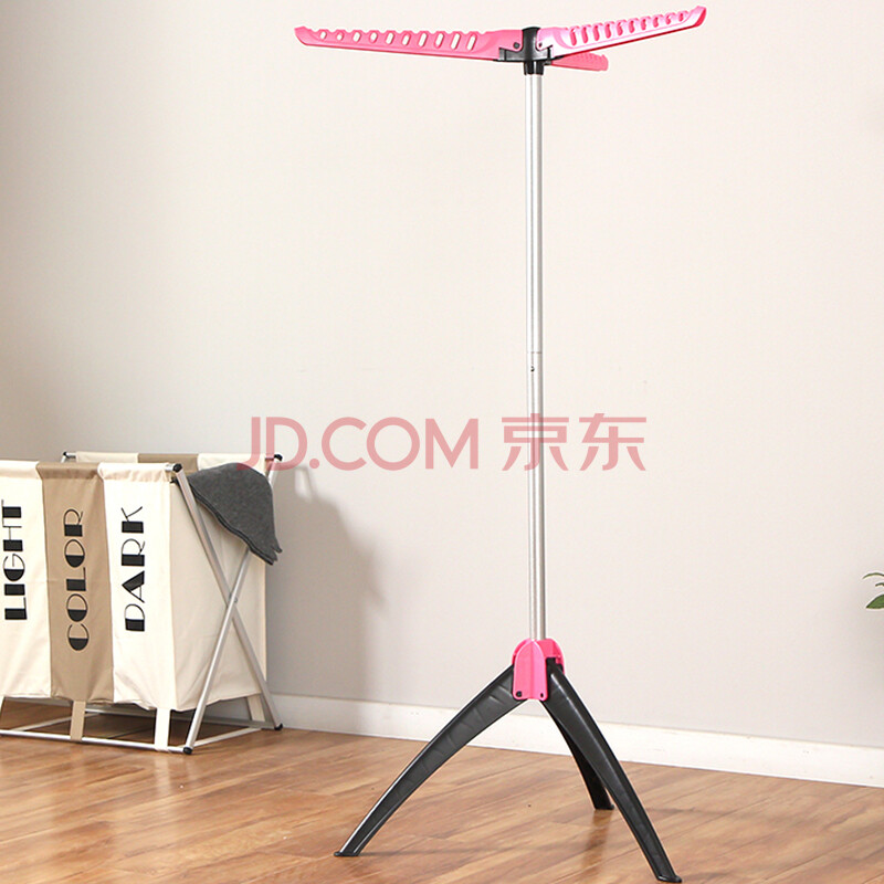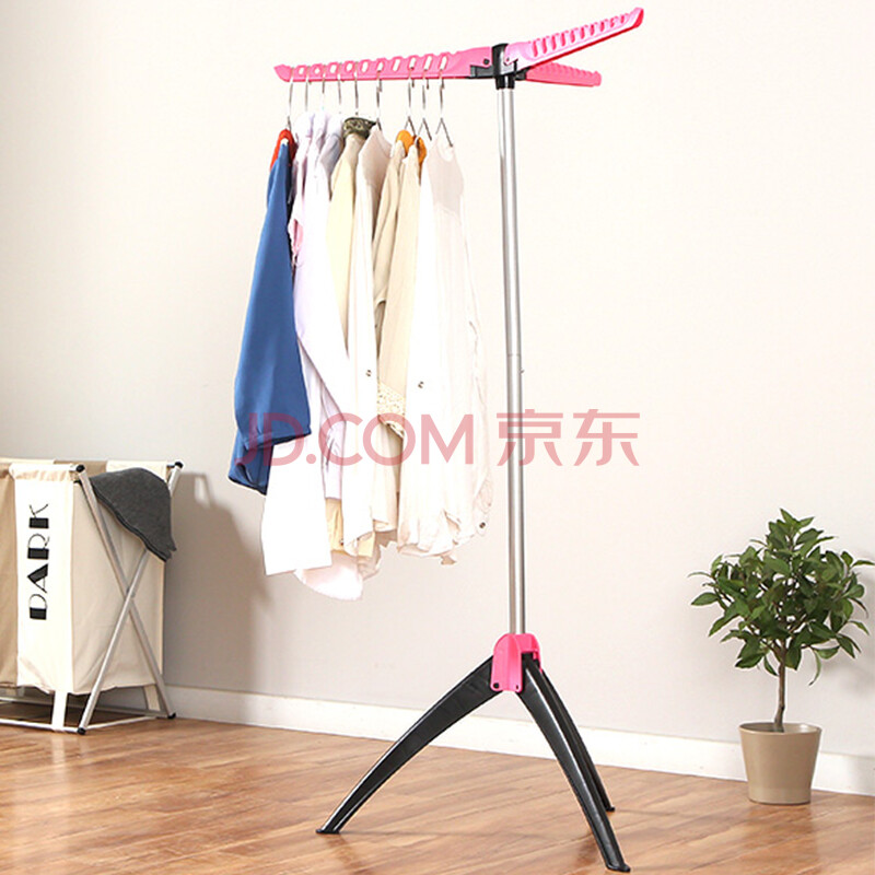 欧润哲 晾衣架 折叠落地三脚房间衣物收纳阳台活动挂衣架 玫红色