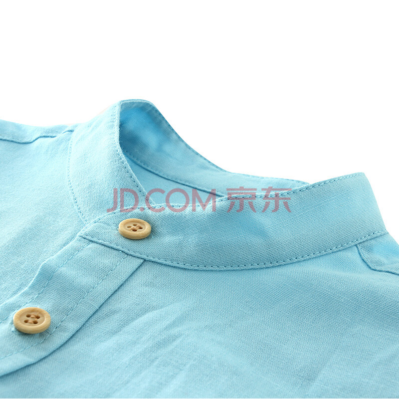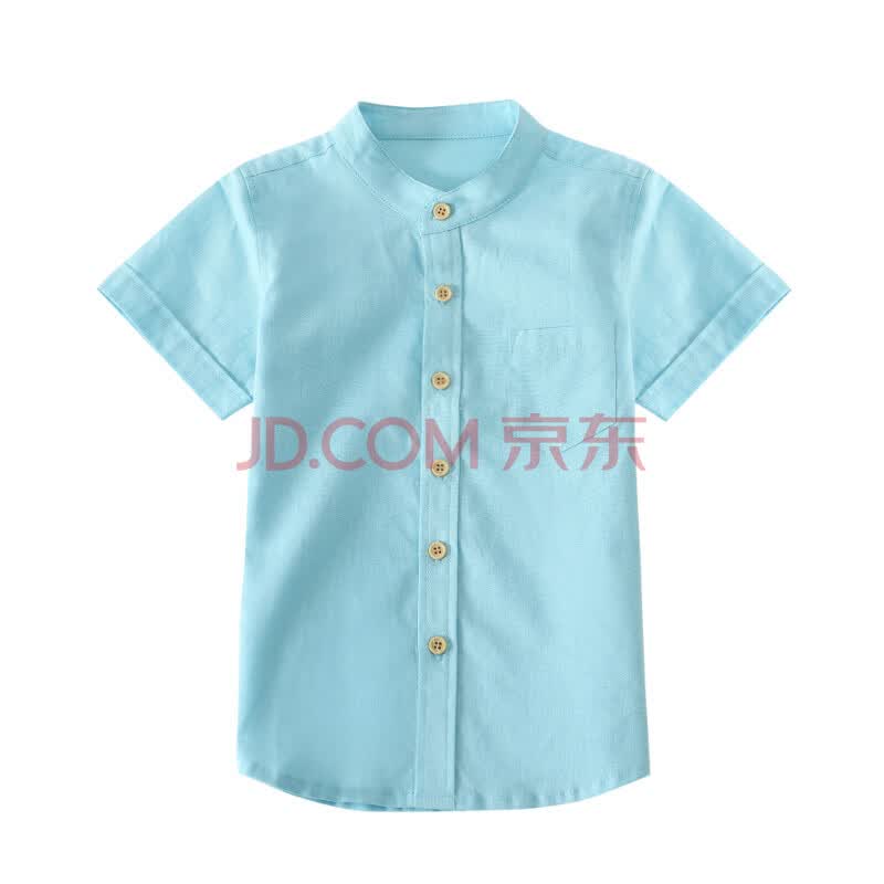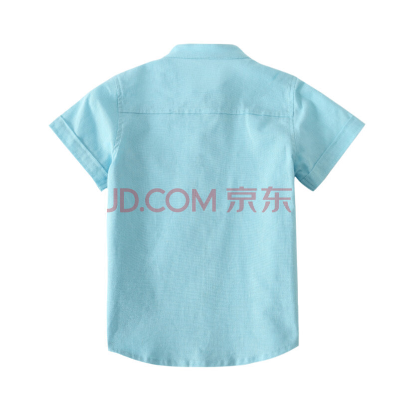小红豆(XHDKiDS)男童短袖衬衫夏季2017新款棉麻纯色中大童短袖休闲上衣 BHC110HB 粉蓝 140
