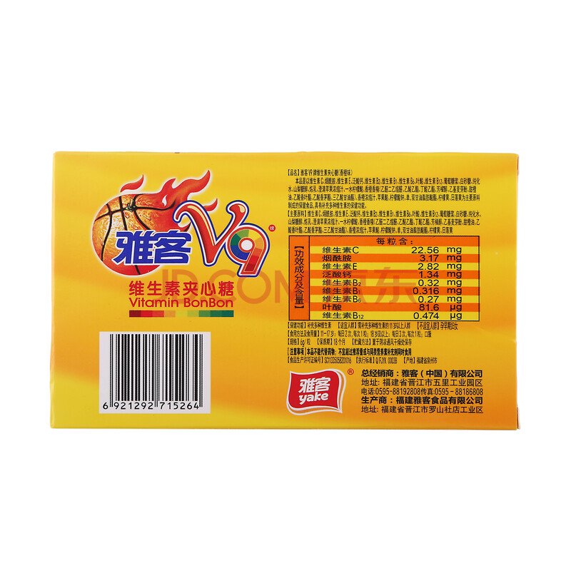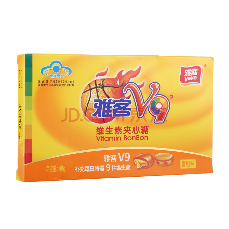 雅客 V9维生素夹心硬糖香橙味48g 糖果零食