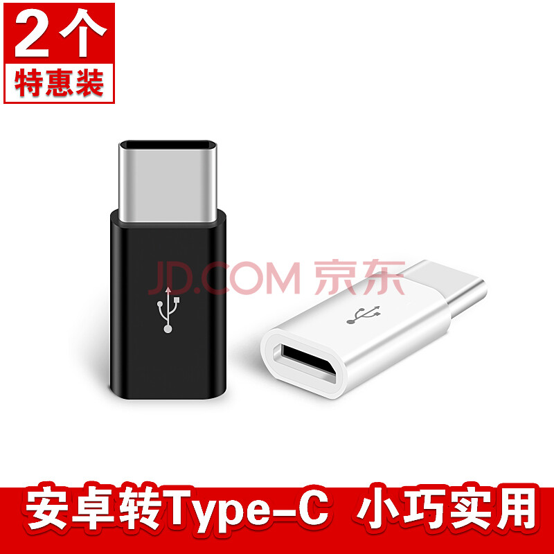 酷波【两个装】安卓Micro USB转Type-C转接头 手机数据/充电线转换头 适用小米6/5华为P10荣耀9/V8乐视2一加5