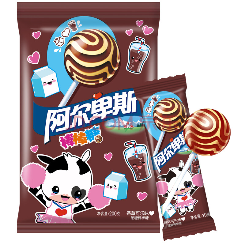 阿尔卑斯香草可乐味硬糖棒棒糖(20支装)200g牛奶糖 休闲零食儿童用糖