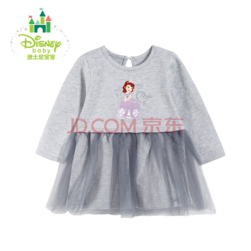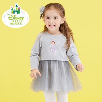 迪士尼(Disney) 春季新品女童裙子甜美网纱连衣裙公主裙173Q645 浅花灰 100cm