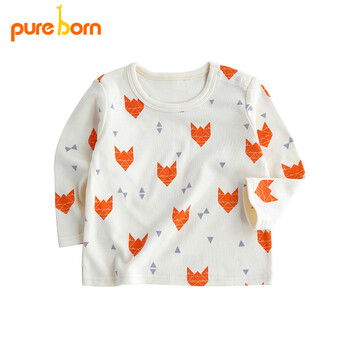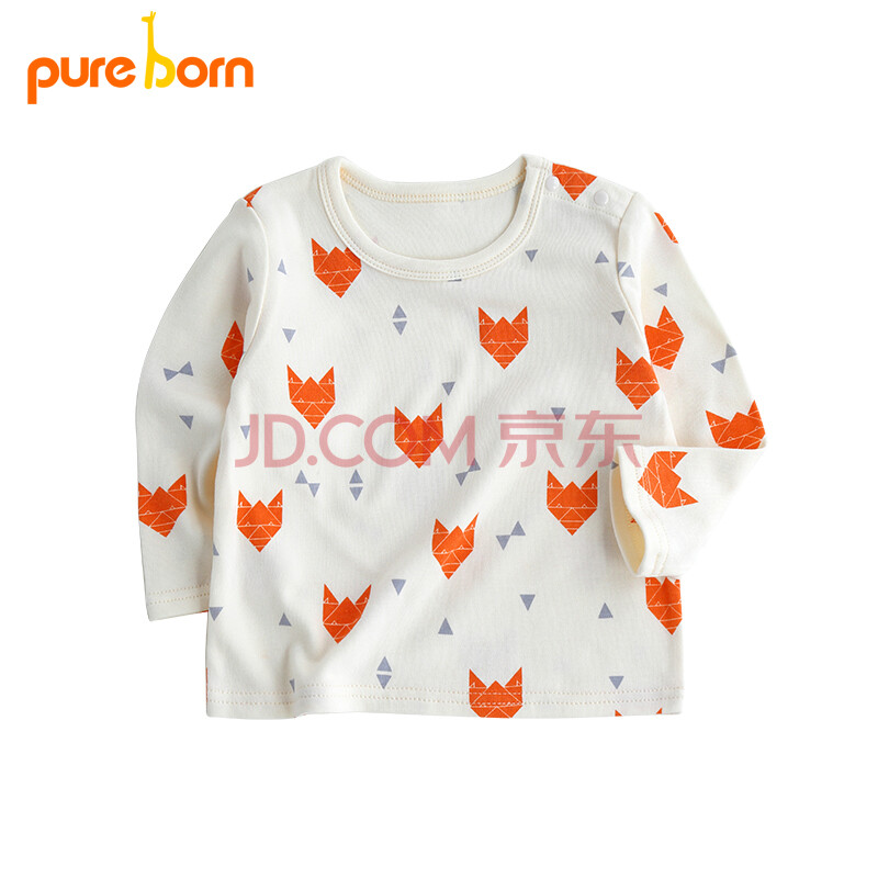 博睿恩pureborn男女宝宝春夏款上衣长袖T恤婴儿童打底衫衣服家居服桔色 80cm/6~12个月