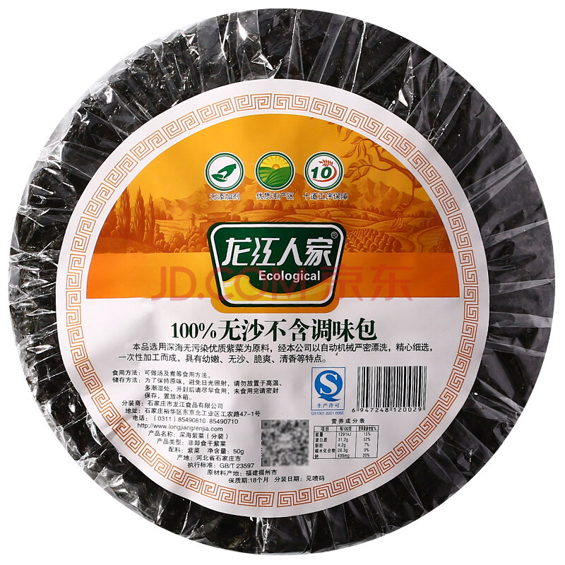 龙江人家 南北干货 海特产紫菜 头水无沙深海水产干货干紫菜汤50g