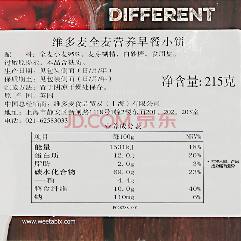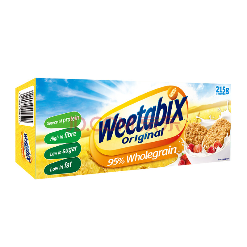 英国进口 维多麦(Weetabix)即食谷物早餐麦片 全麦营养早餐小饼 共12块 215g