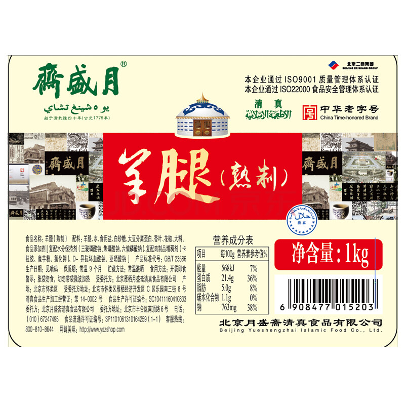 月盛斋 中华老字号羊腿清真熟食礼盒1000g(烤羊腿 北京特产 休闲零食肉干肉脯)