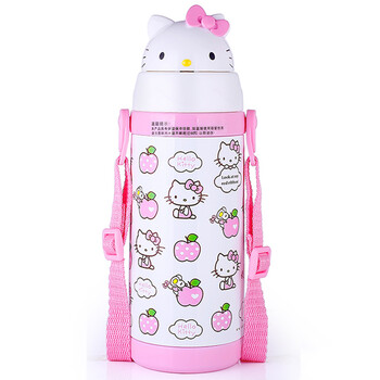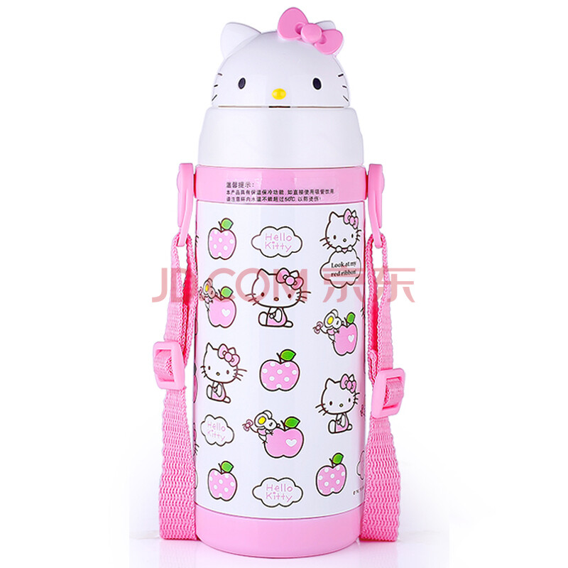 凯蒂猫 hellokitty保温杯 儿童真空吸管壶男女学生不锈钢便携水杯子380ML 白色