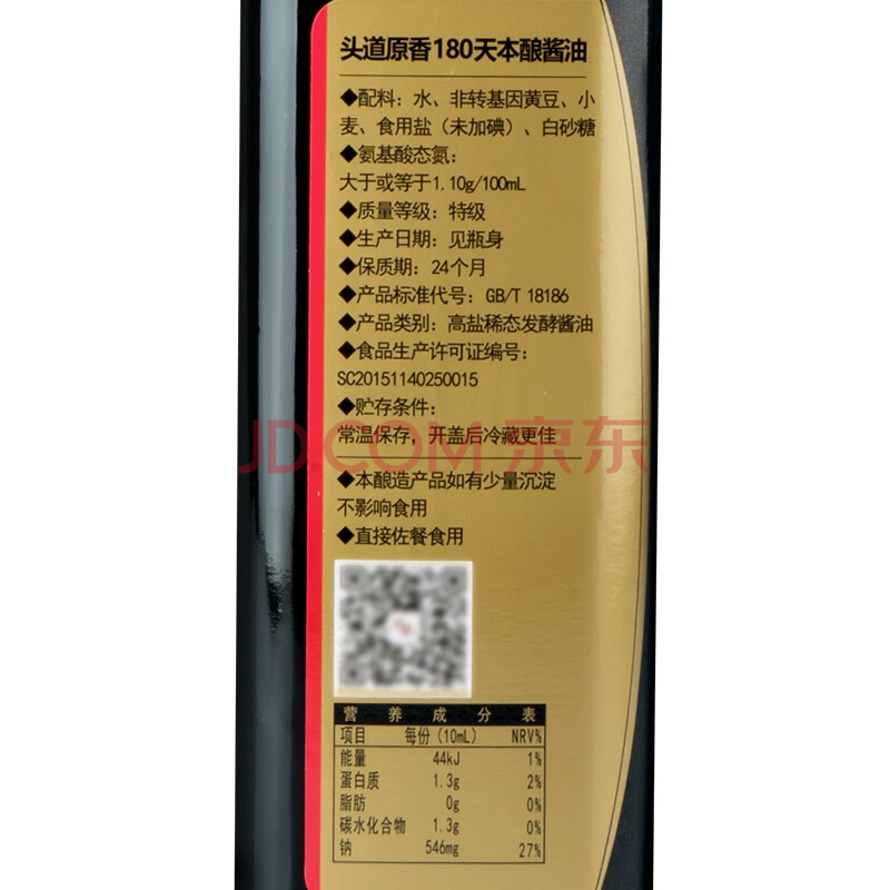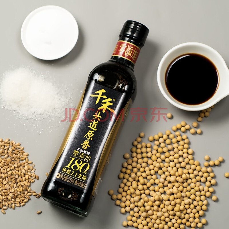 千禾 头道原香180天特级生抽酱油 零添加 黄豆酿造酱油 厨房调料调味品500ml