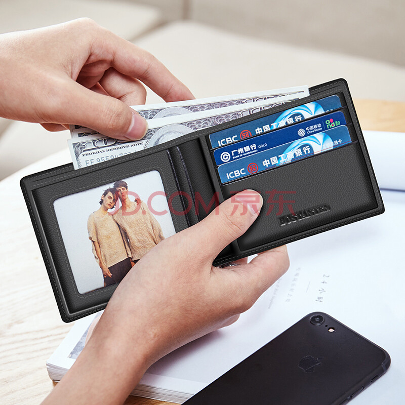 波斯丹顿(BOSTANTEN)男士钱包 头层牛皮横款钱包男短款商务休闲钱夹 B3173033黑色