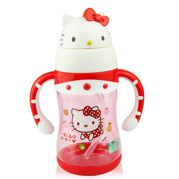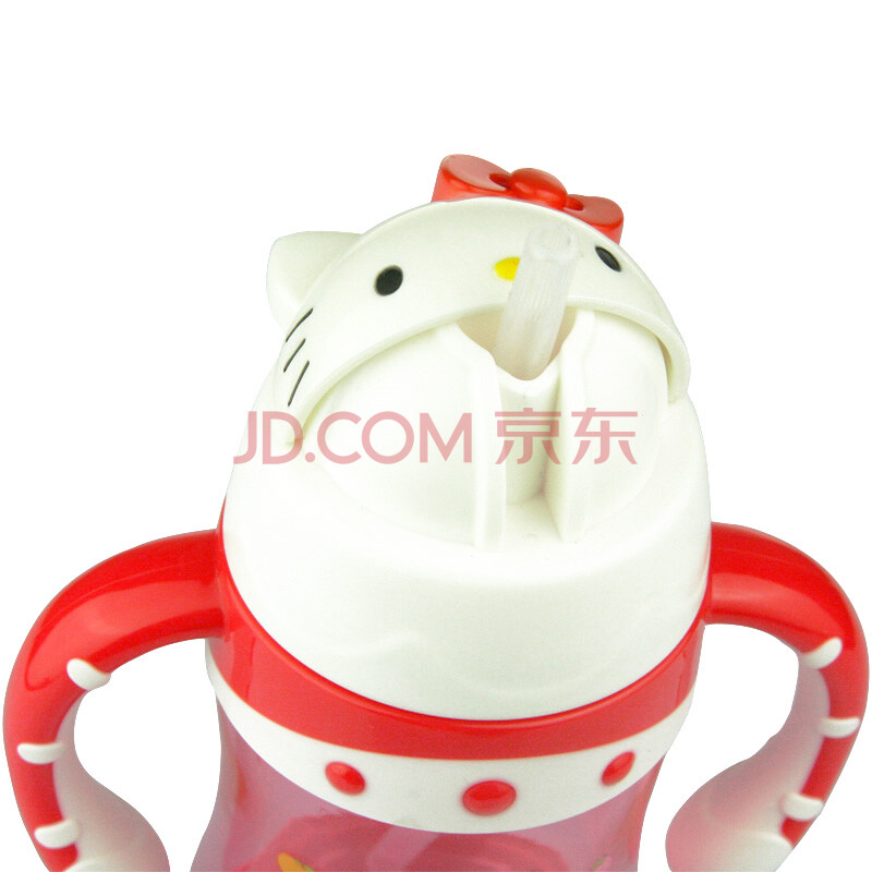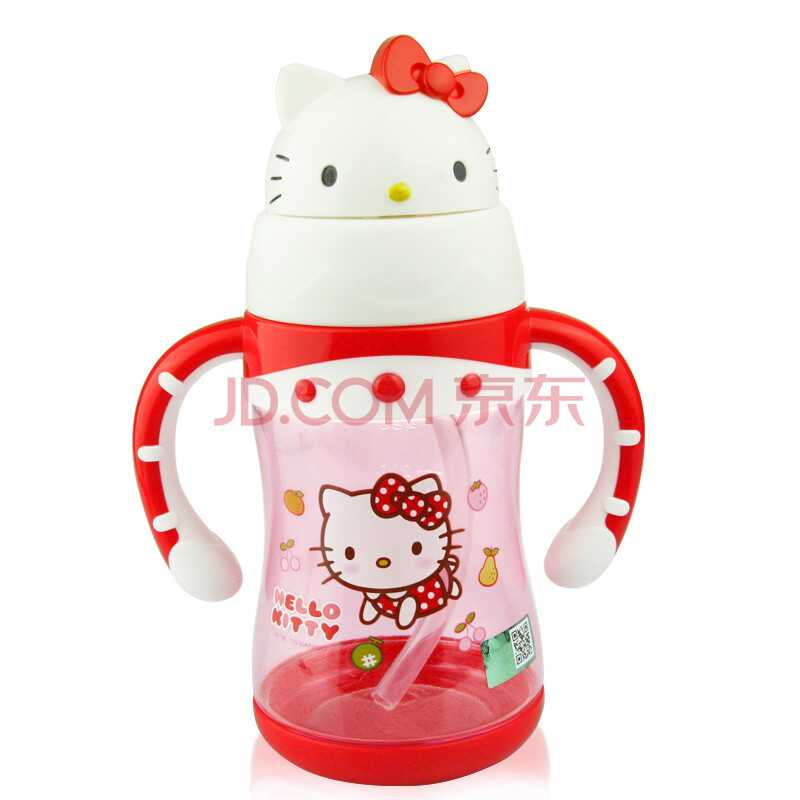 凯蒂猫 hellokitty塑料杯 儿童双柄Tritan材质吸管水杯子300ML 红色