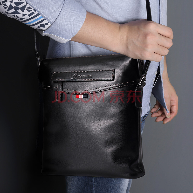 阿尔皮纳袋鼠(L’ALPINA) 单肩包男牛皮商务手提包多功能牛皮男士斜挎包韩版休闲男包 662032004黑色