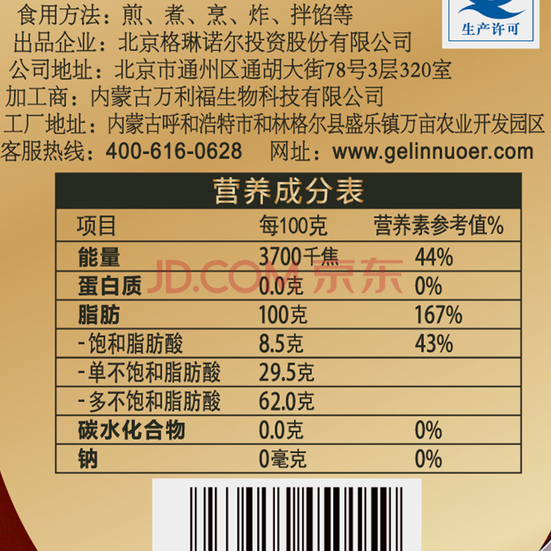 亚麻公社 古法压榨醇香内蒙古胡麻油 热榨亚麻籽油食用油2.5L