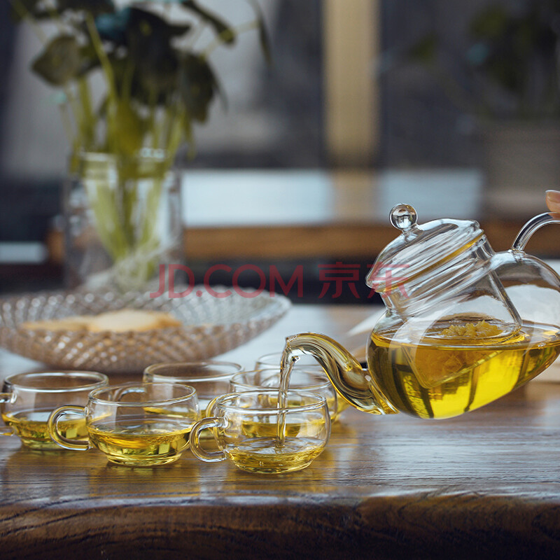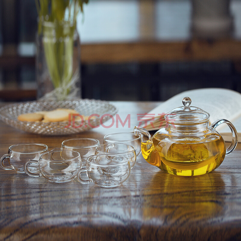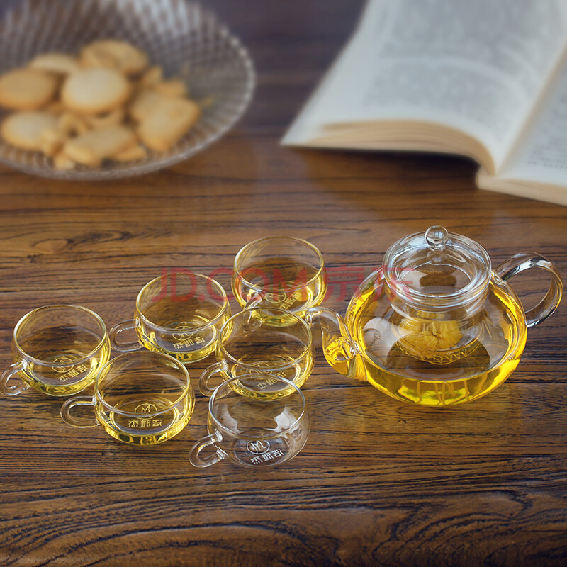 洁雅杰玻璃茶具套装 带过滤耐热玻璃泡茶壶7件套(1茶壶+6茶杯)直火玻璃红茶茶具套装 YGE-6806
