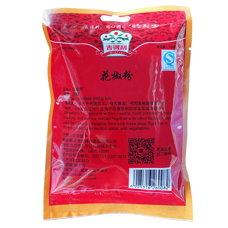 吉得利 花椒粉 调味粉佐料 香辛料烧烤调料100g