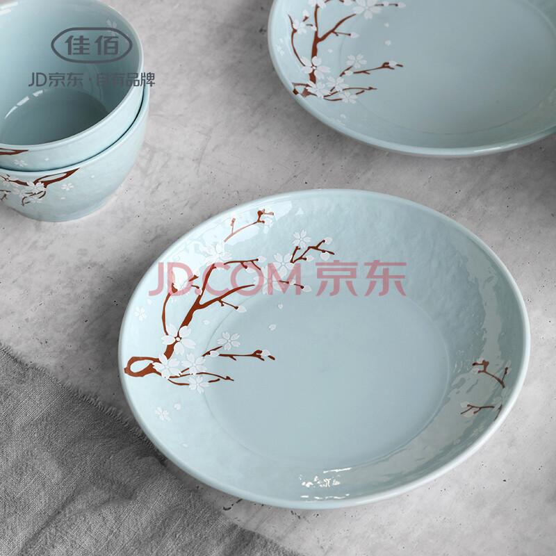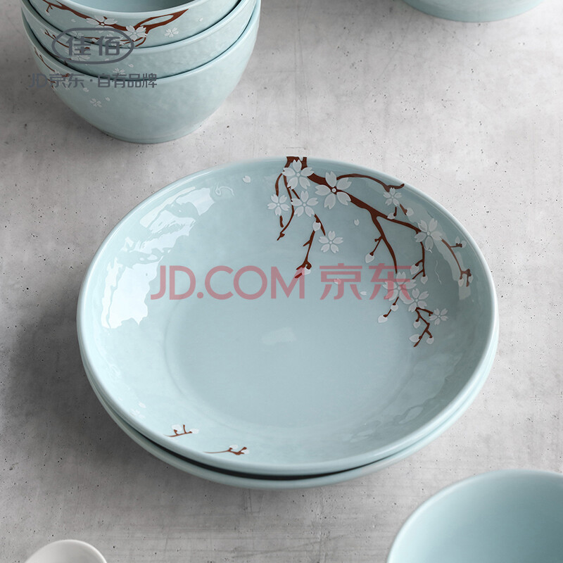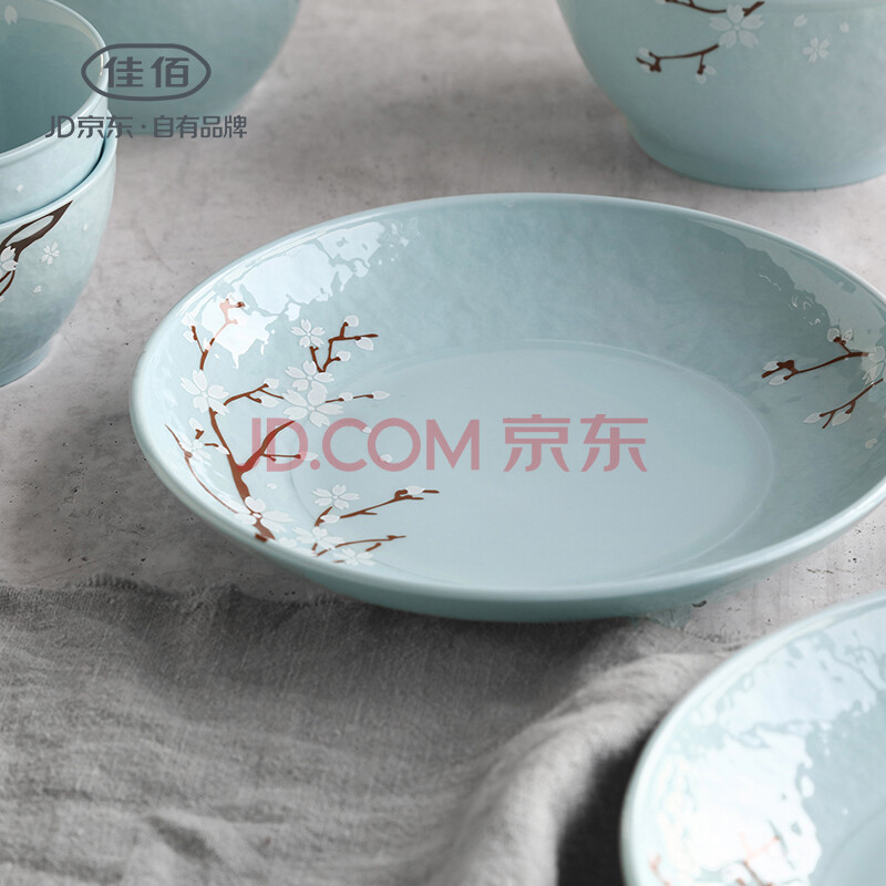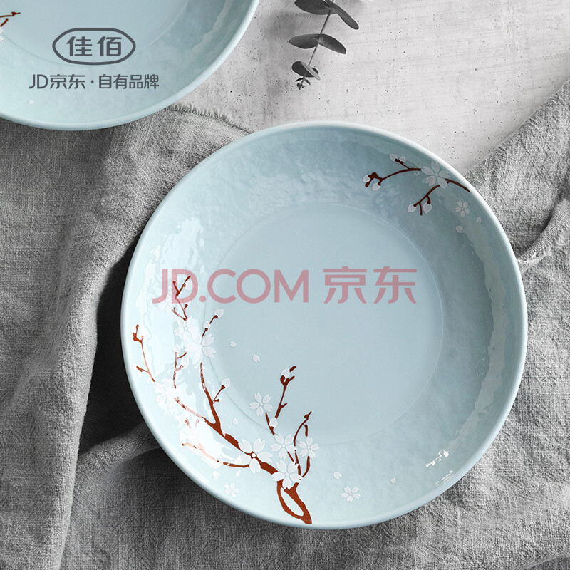 佳佰 盘子餐具套装 果盘 水果盘陶瓷饭盘套装 樱花语7英寸陶瓷餐盘2件套(蓝) 京东自营