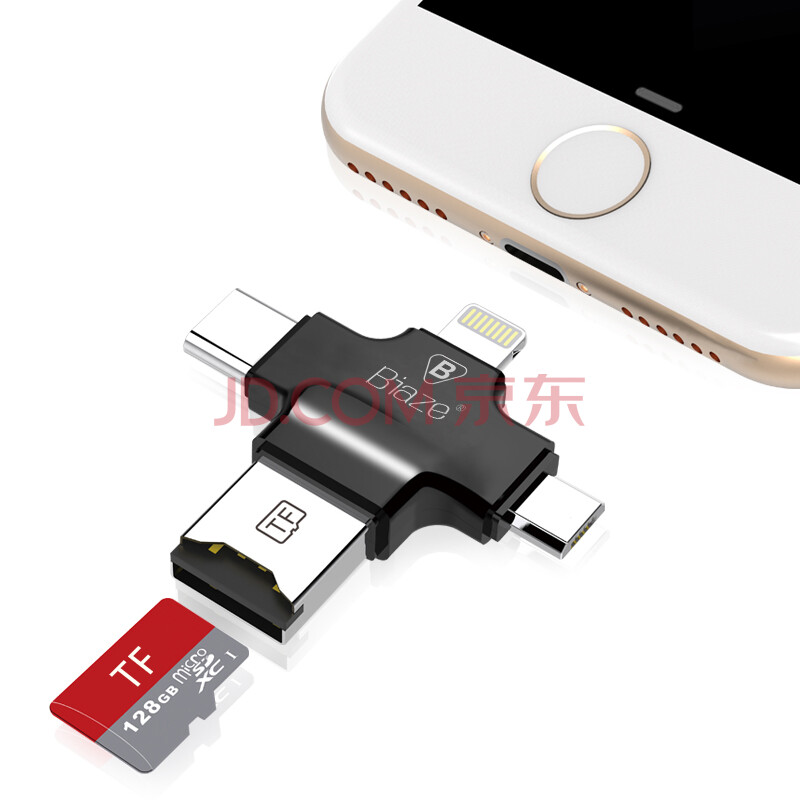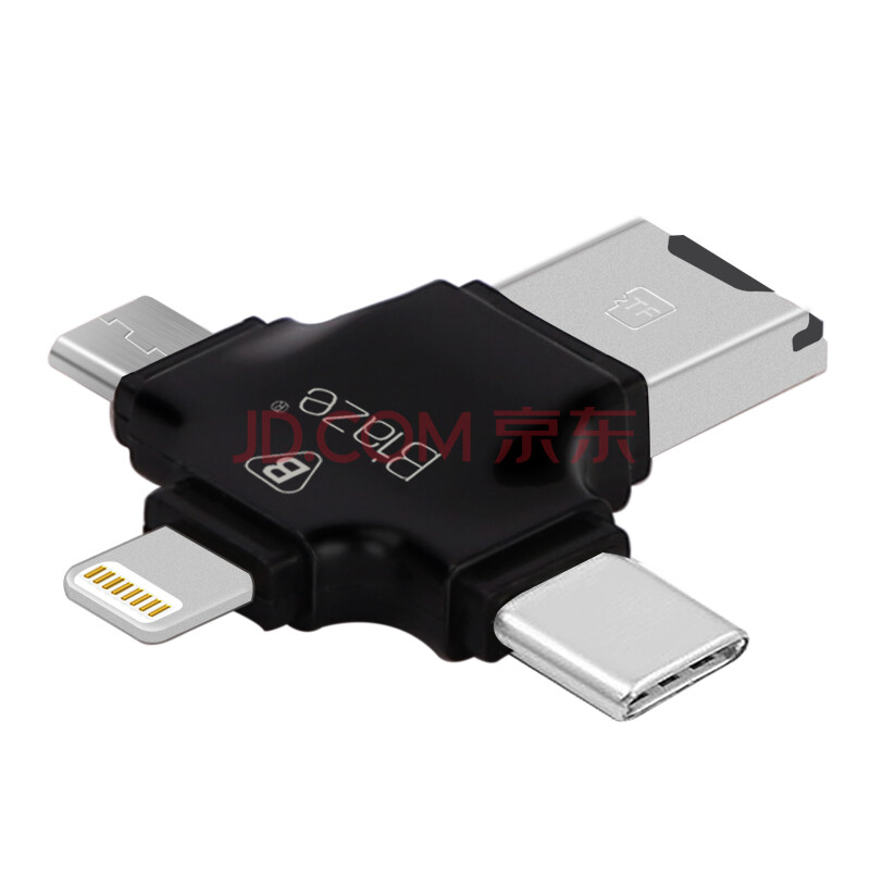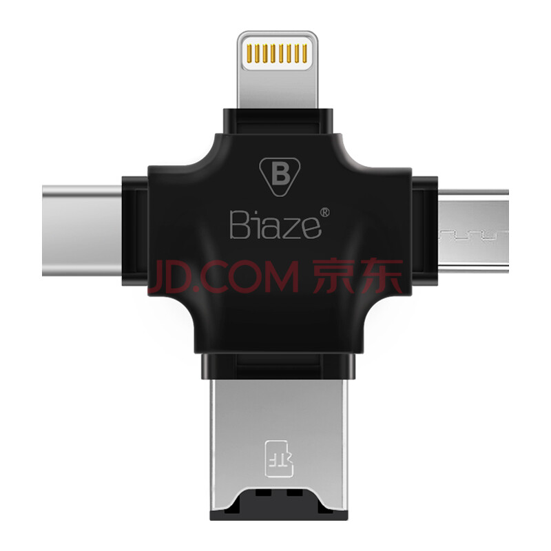 BIAZE 四合一读卡器 黑色 手机U盘插TF卡OTG外接优盘Type-C手机电脑双用 适用于苹果 安卓
