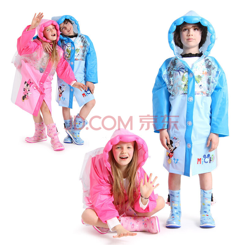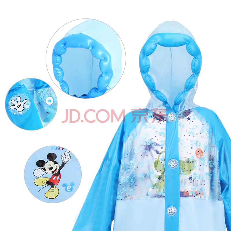 迪士尼 Disney 儿童雨衣 男童女童雨披带书包位加厚卡通小学生雨衣1007 米奇蓝L