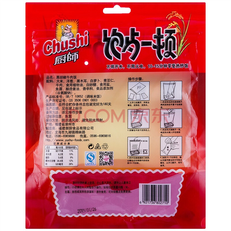 厨师 方便炒饭米饭 黑胡椒牛肉口味 自热米饭 250g
