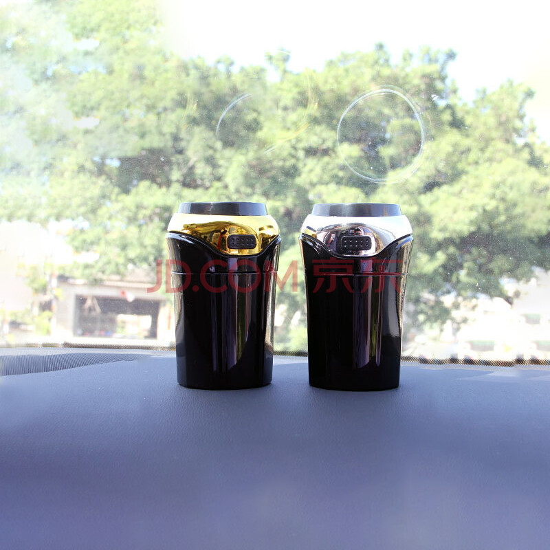 华饰 车载烟灰缸 汽车用品烟灰缸带LED灯 翻盖太阳能供电可拆卸烟灰缸 汽车车内通用 N12B银色 8x8x12.5cm