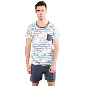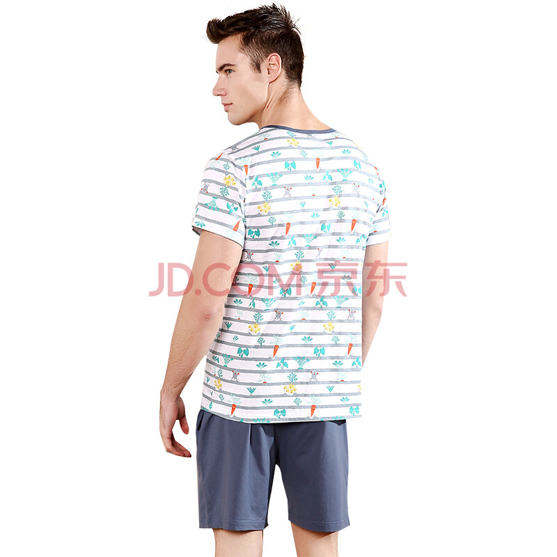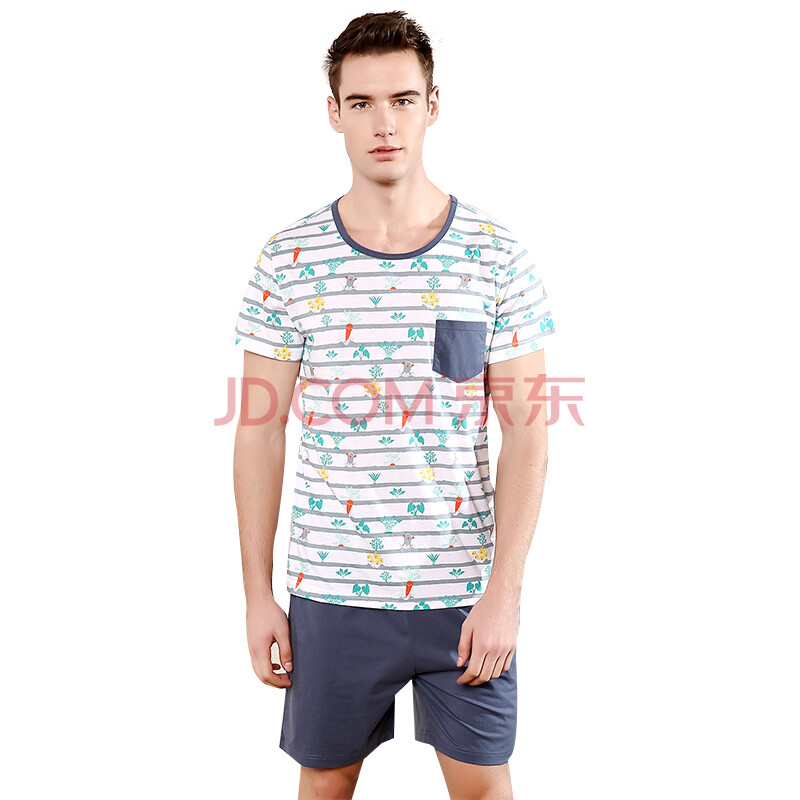 红豆居家(Hodohome)亲子装睡衣家居服夏款男式纯棉休闲简约亲子短袖套装 男式花色 180/100A