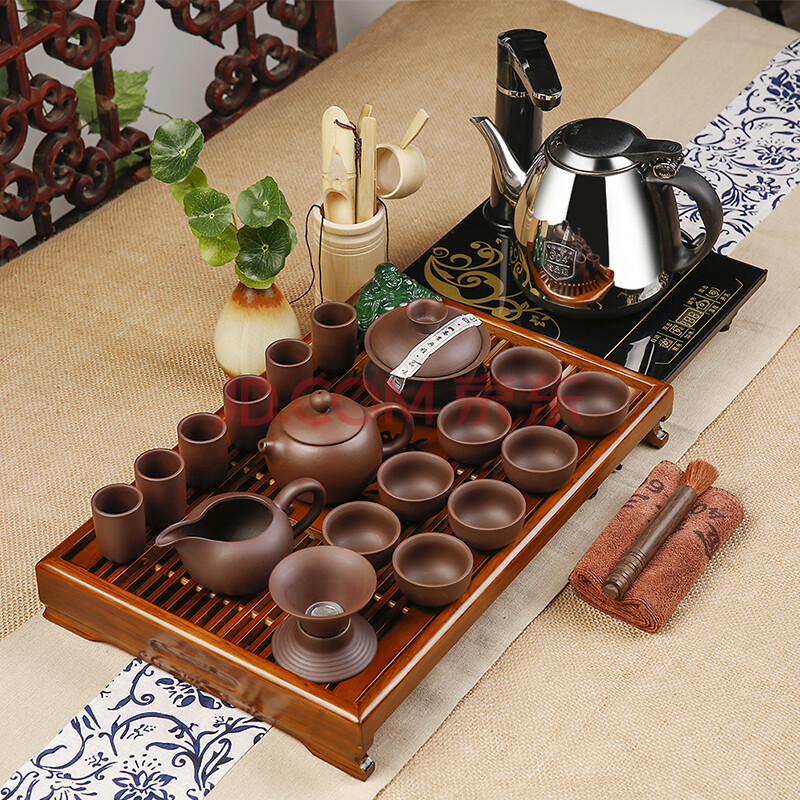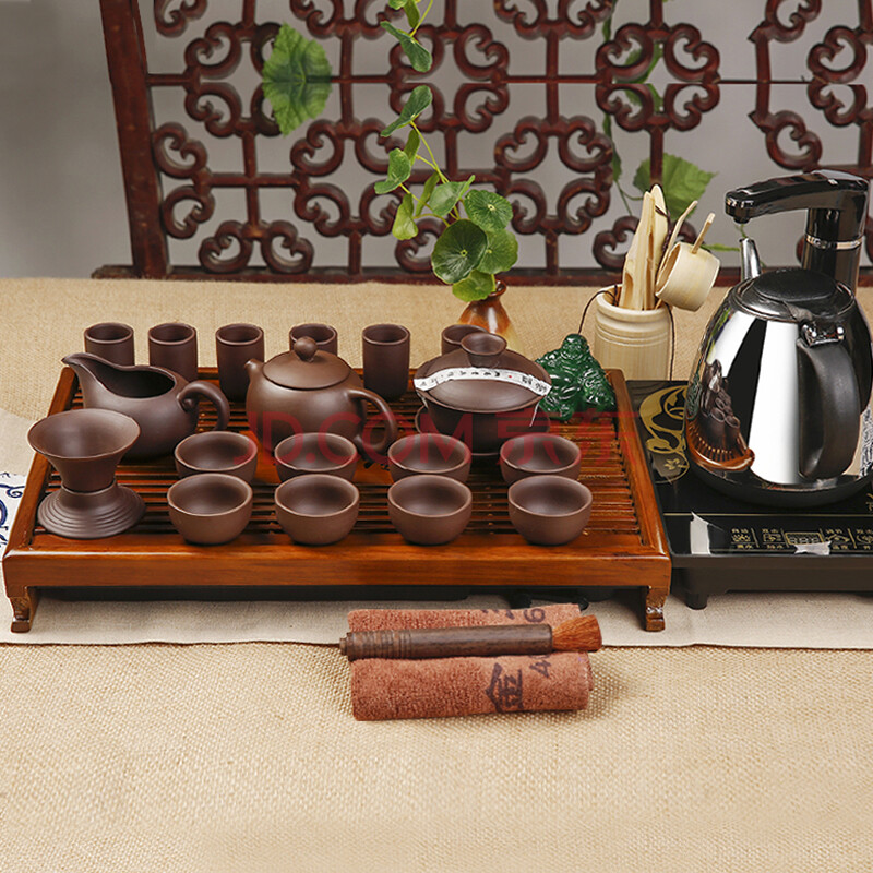 常生源 茶具套装 整套紫砂功夫茶具 三合一电热炉 柯木实木茶盘 茶缘如意紫砂套装