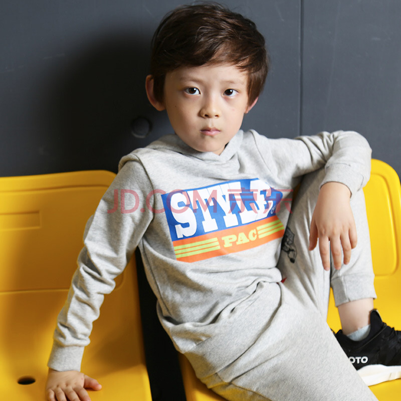 派克兰帝 PacLantic 儿童春秋卫衣 男女童潮流童装针织连帽套头卫衣 JGWK15302 浅花灰 160