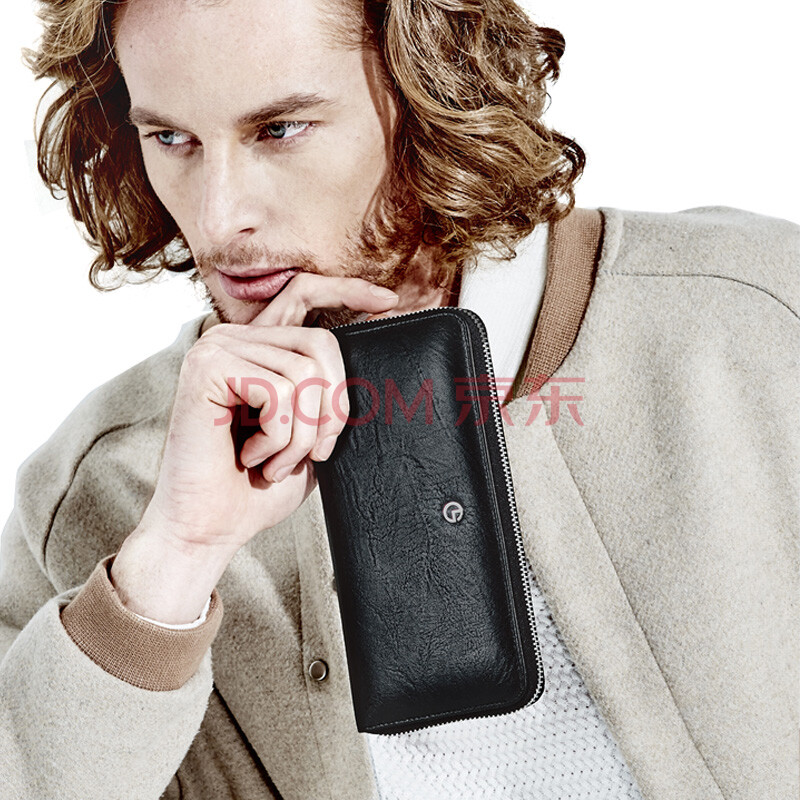 金利来(Goldlion)新款手拿包男式票夹多卡位手拿包商务休闲钱包 黑A621010-211