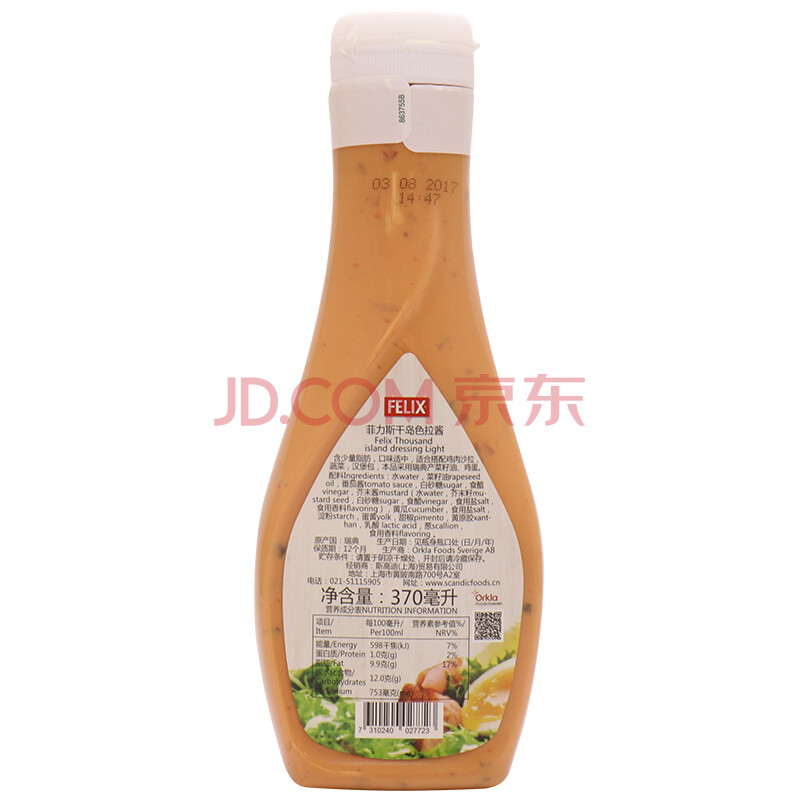 瑞典进口 菲力斯(FELIX)千岛酱沙拉酱 水果蔬菜色拉酱370ml