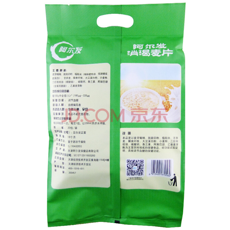 阿尔发 无糖食品 消渴麦片 即食冲饮 营养谷物早餐600g/袋