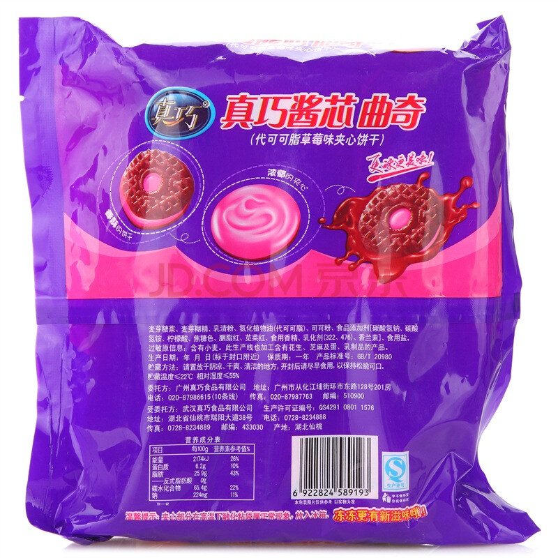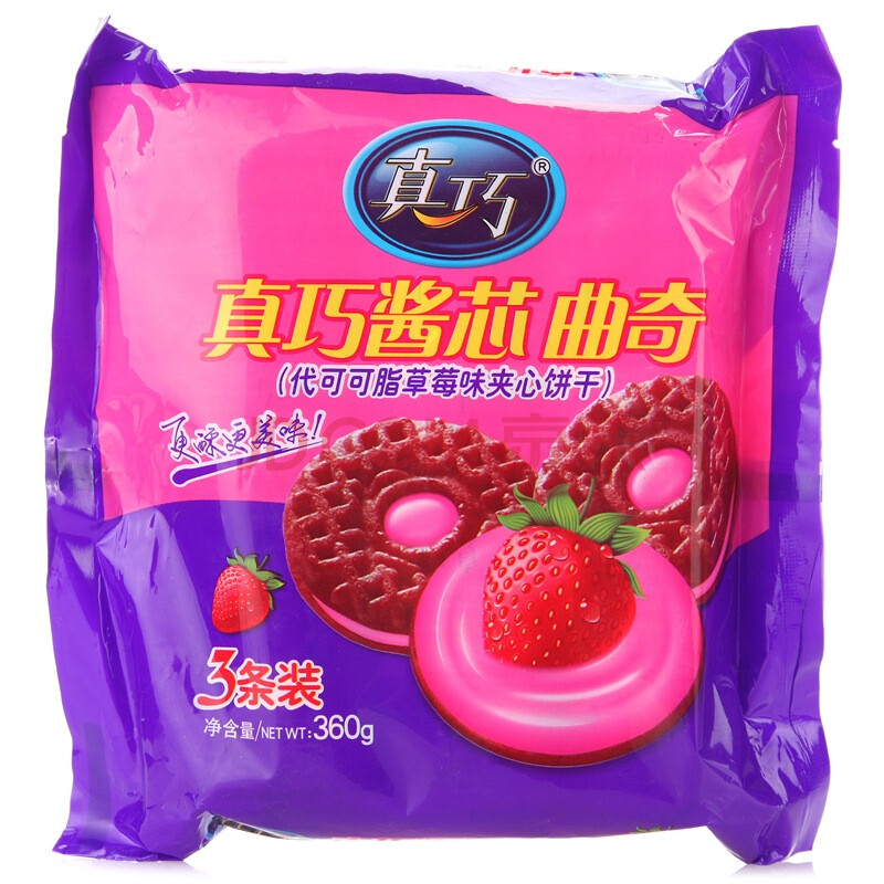 真巧 饼干蛋糕 零食点心 早餐夹心饼干 酱心曲奇饼干 草莓味360g/袋
