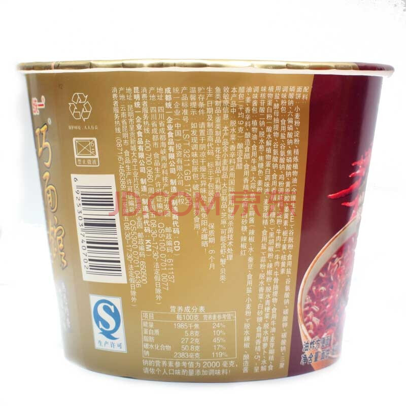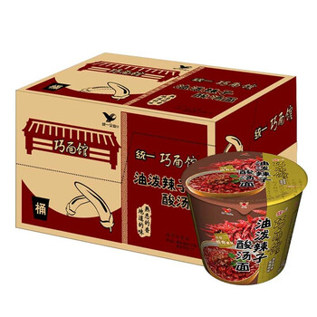 统一 巧面馆 方便面 油泼辣子酸汤面 122g桶面*12桶 整箱装