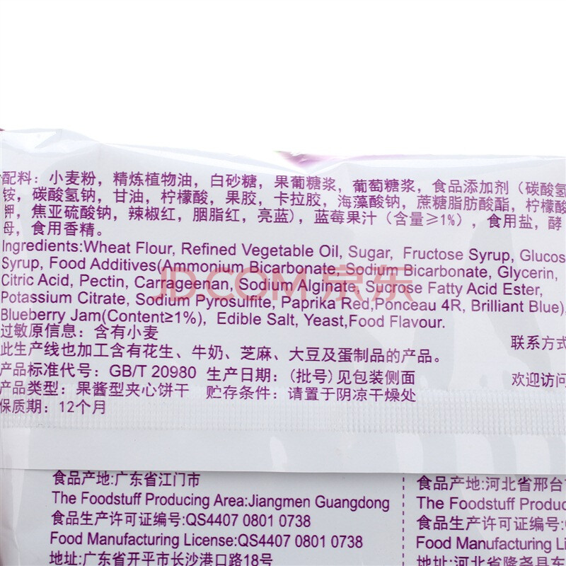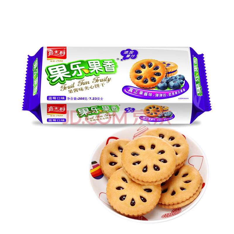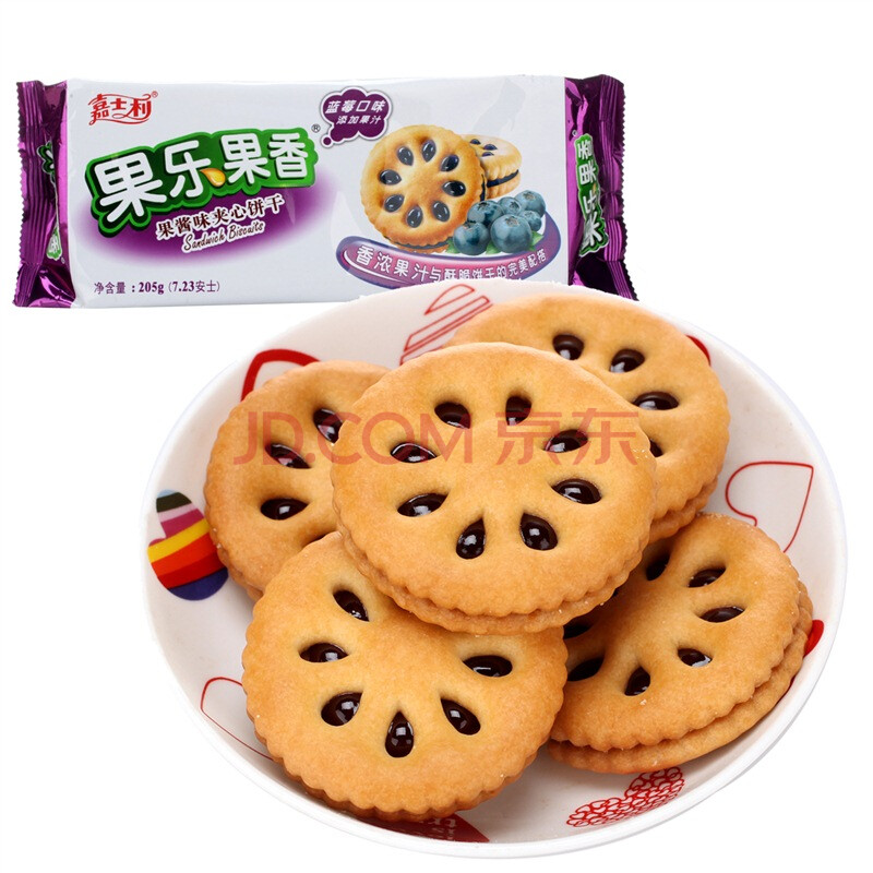 嘉士利 零食 饼干蛋糕 果乐果香 早餐果酱夹心饼干 蓝莓味205g/袋