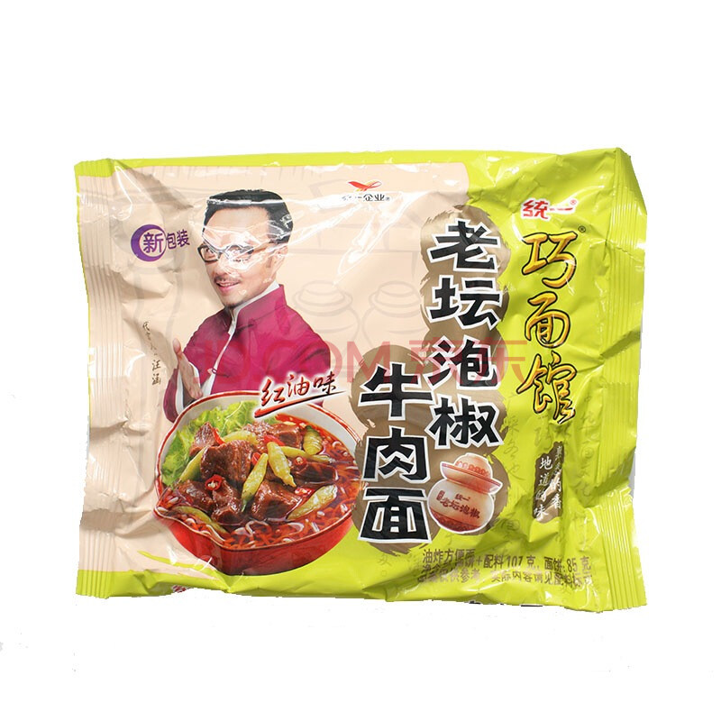 统一 巧面馆 方便面 老坛泡椒牛肉面 107g袋面*5袋 五连包