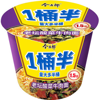 今麦郎 方便面 一桶半老坛酸菜牛肉面 桶面 165g 泡面单桶
