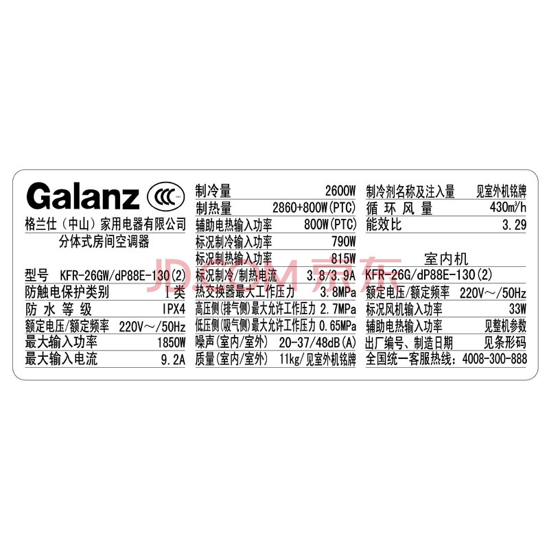 格兰仕(Galanz)大1匹 壁挂式 定速 智能空调(静音空调) 京东微联App控制KFR-26GW/dP88E-130(2)