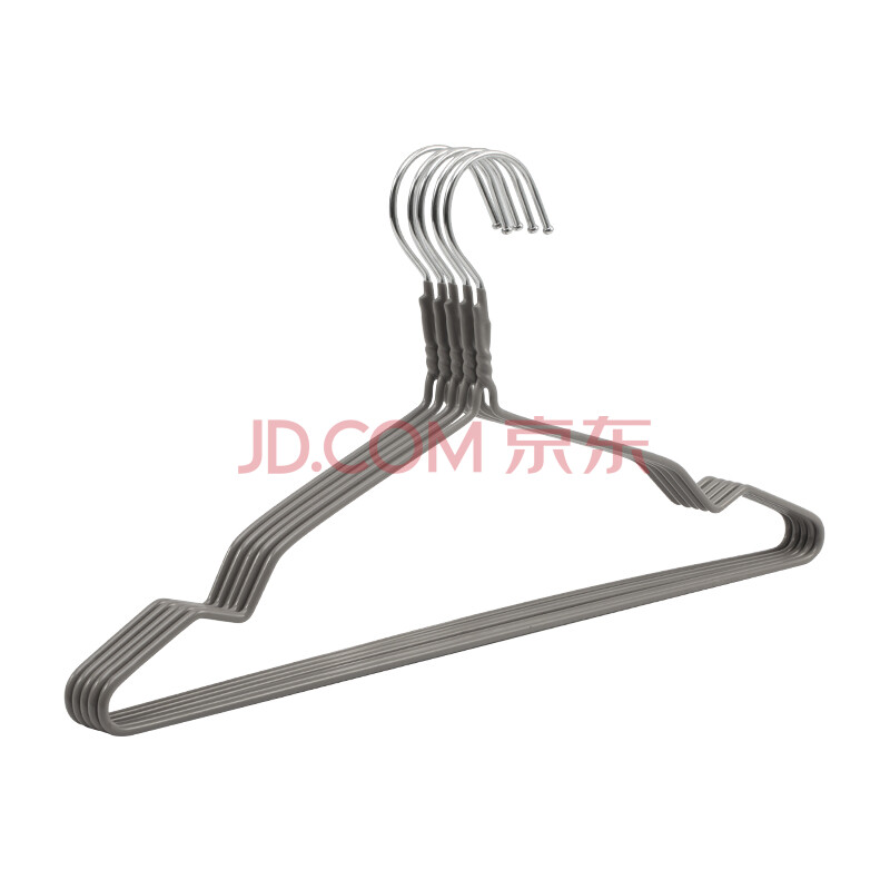 佳佰 高锰钢线浸胶防滑衣架 5支装 成人衣服架 40CM肩宽 灰色 2H002