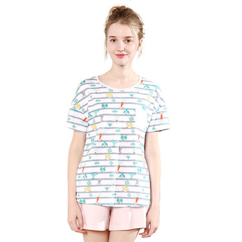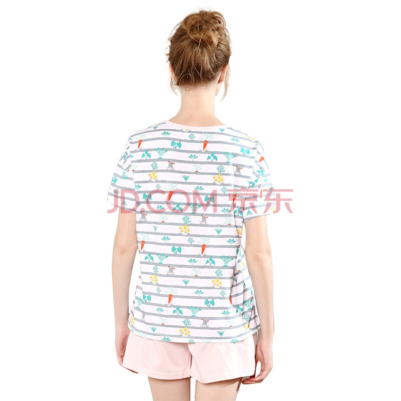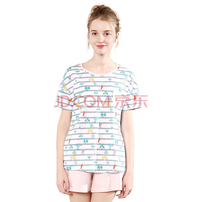 红豆居家(Hodohome)亲子装睡衣家居服夏款女式纯棉休闲简约亲子短袖套装 女式花色 160/84A