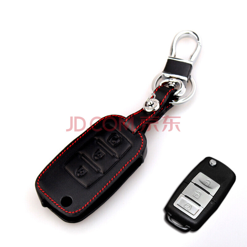 华饰 景逸钥匙包 折叠三键黑色 景逸x5 x3景逸s50真皮钥匙套钥匙扣