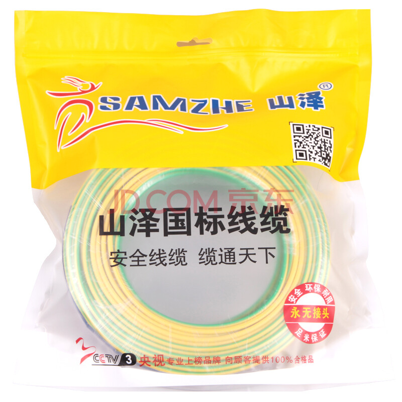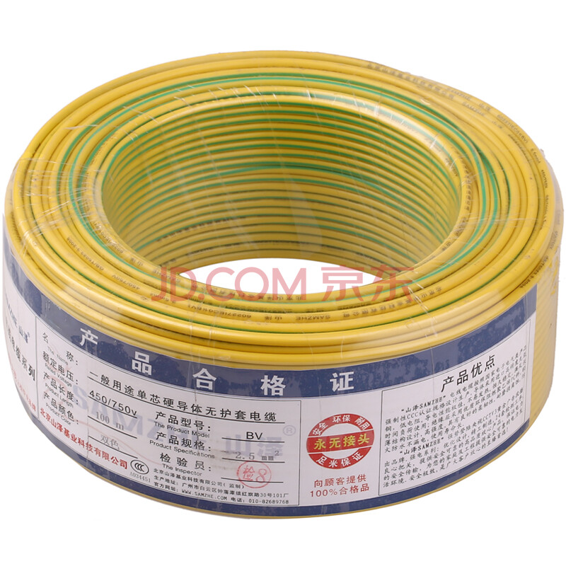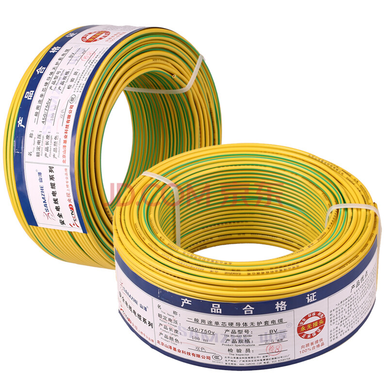 山泽(SAMZHE)电线电缆 SZS-BV4平方 国标单芯单股硬线铜电线 100米 双色