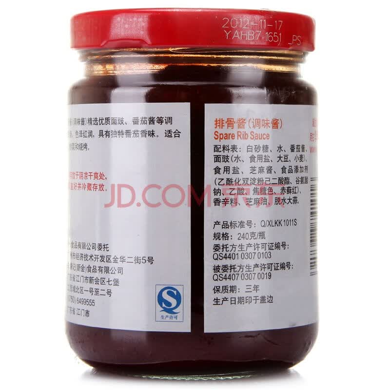 李锦记 排骨酱 烧烤腌制蘸点火锅拌面调味酱料 240g