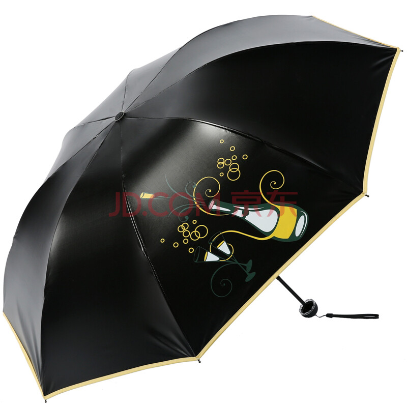 天堂伞 全遮光(UPF50+)黑丝亮胶三折太阳伞晴雨伞31840E黄色