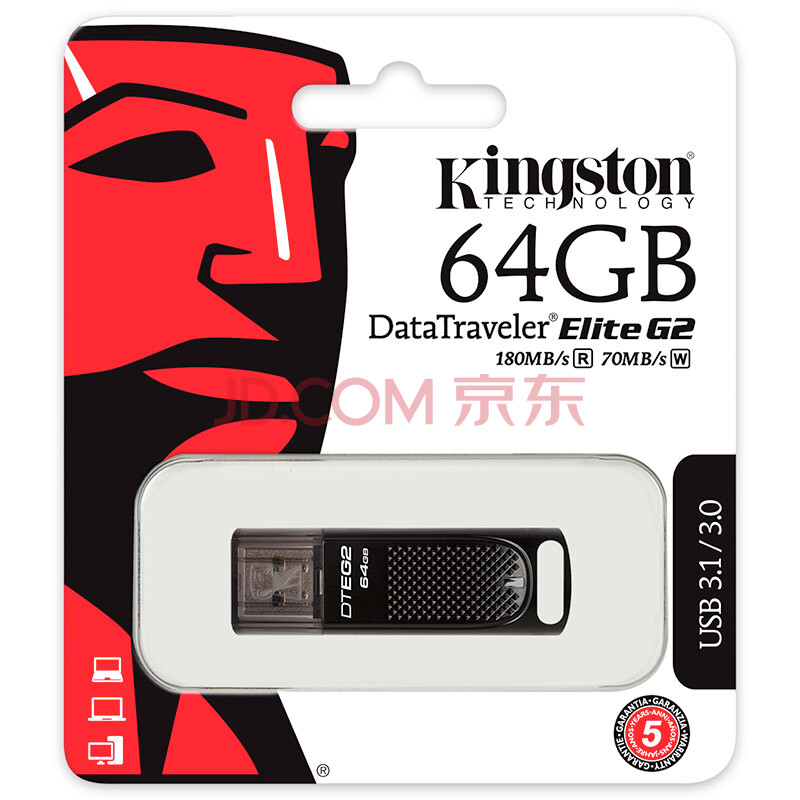 金士顿(Kingston ) 64GB U盘 USB3.1 DTEG2 金属外壳 高速车载U盘 读速180MB/s