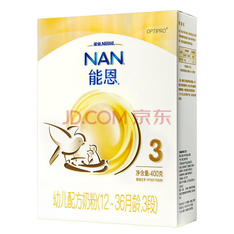 雀巢(nestle)能恩 幼儿配方奶粉 3段(12-36个月婴儿适用)400克(新老包装随机发货)