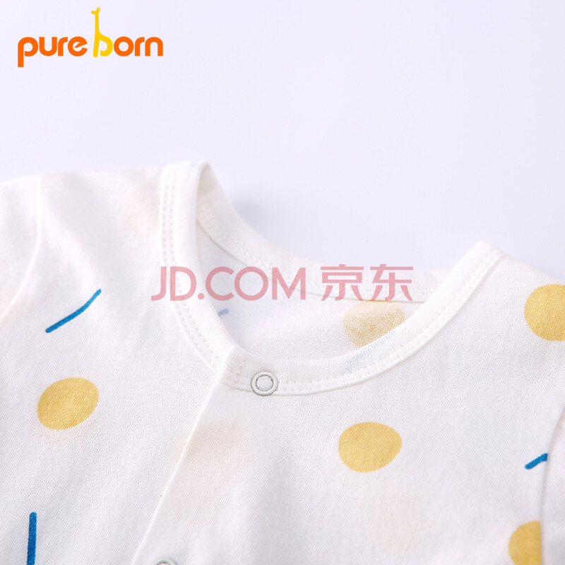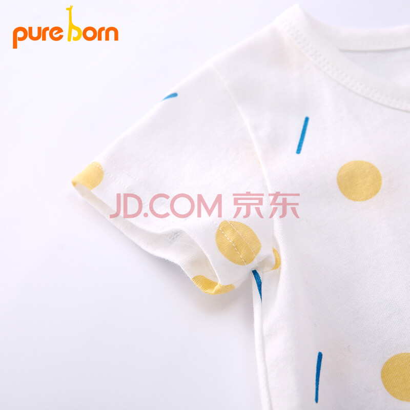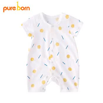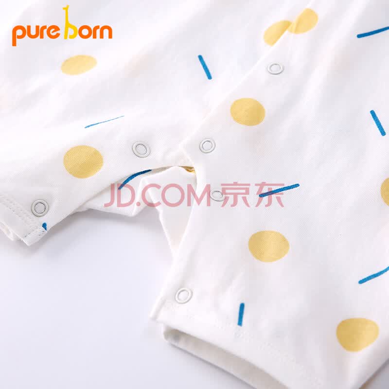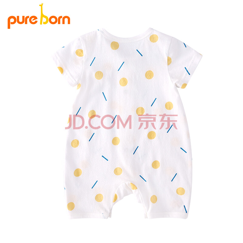 博睿恩Pureborn婴儿连体衣夏季薄款宝宝短袖哈衣爬服黄波点 90cm/1-2岁