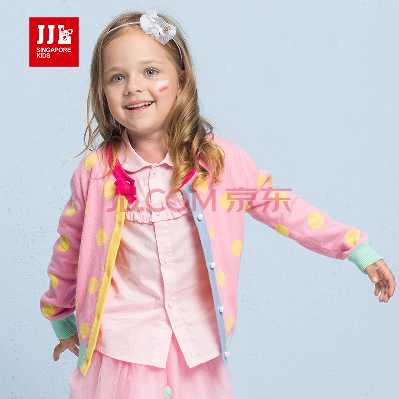 季季乐(JJLKIDS Partner Club)童装女童毛衣外套女小童宝宝秋款针织纯棉开衫儿童毛衫GCM73036 粉红 110